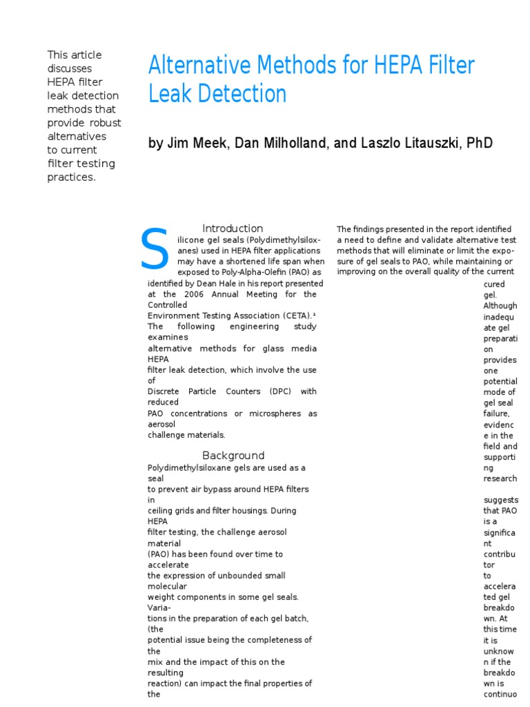 Alternative Methods For Hepa Filter Leak Detection Hepa Filter